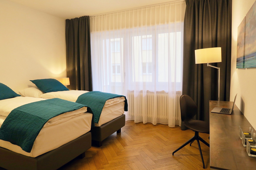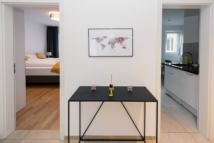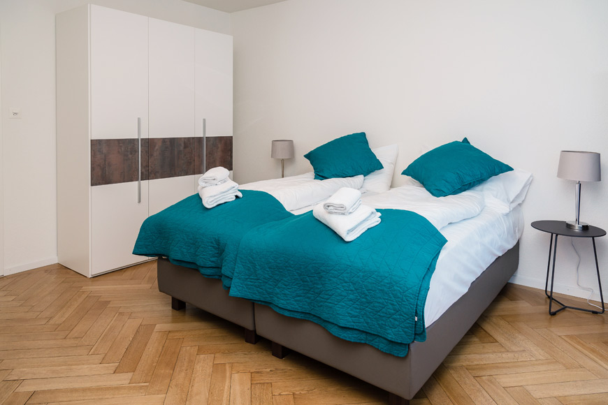 Centrally located in the heart of Zurich city with excellent network of public transportation. This stylish and newly furnished apartment offers a spacious living area with Flat TV screen, comfortable Sofa that can be converted to Bed and a dining area. The Master bedroom has a luxury Boxspring Bed. The night stand has a USB plug to recharge your device in the night. The additional bedroom is equiped with two single beds that can be pulled together for guests or children. The kitchen is fully equiped with all cooking and dining utensils that you need to enjoy a tasty home cooked meal with your loved ones. The bathroom is equiped with a full bath and a toilet with all bathroom amenities including complimentary shampoo, shower gel, body lotion and fresh towels. The balcony is equipped with table and chairs to enjoy a meal or drink outdoors in the mild summer evenings.